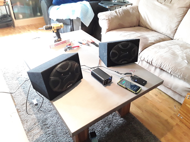The amplifier is mounted. This was especially nice, since I could get great music quality while working :)