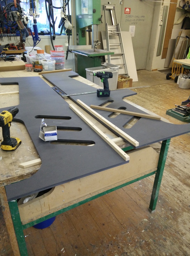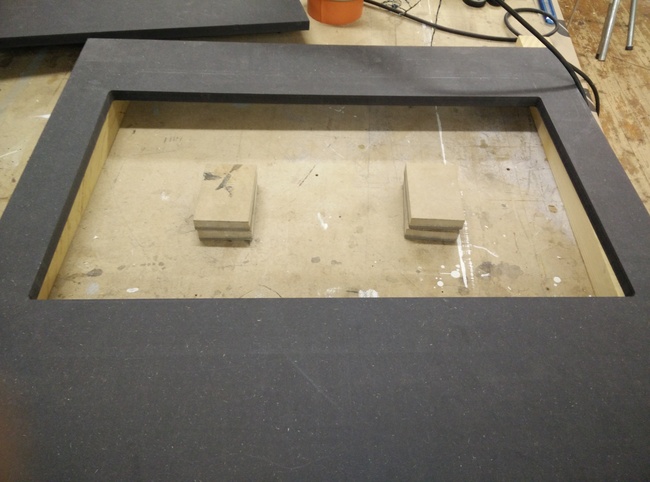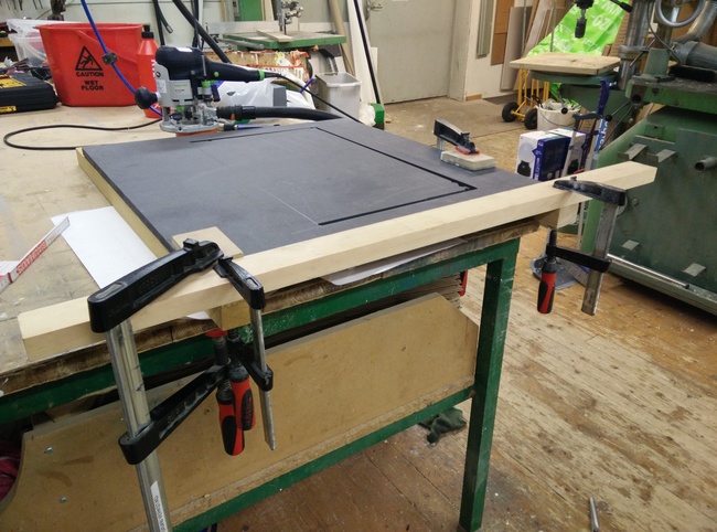 The 16mm MDF was too thick, but a couple of minutes with the plunge router and the joysticks were in place!