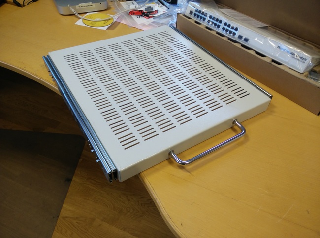 Extremely robust tray from an old Compaq rack. Slides really nice on those rails though.